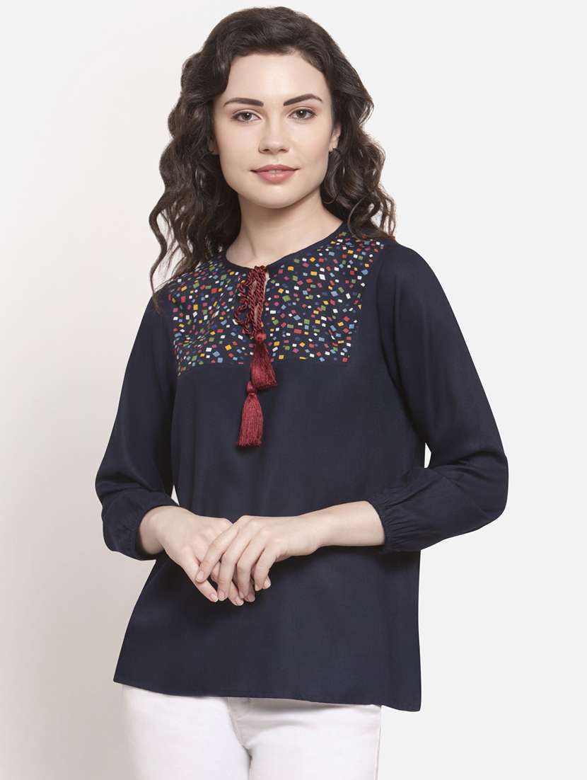 - » tassel tie up geometric printed top