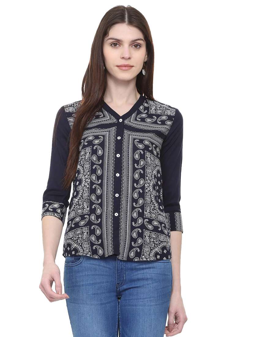 - » navy blue paisley print shirt