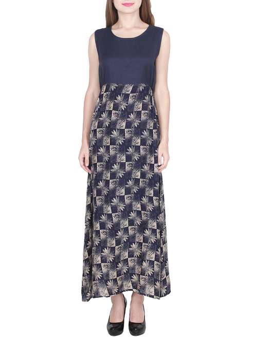 - » navy blue printed rayon maxi dress