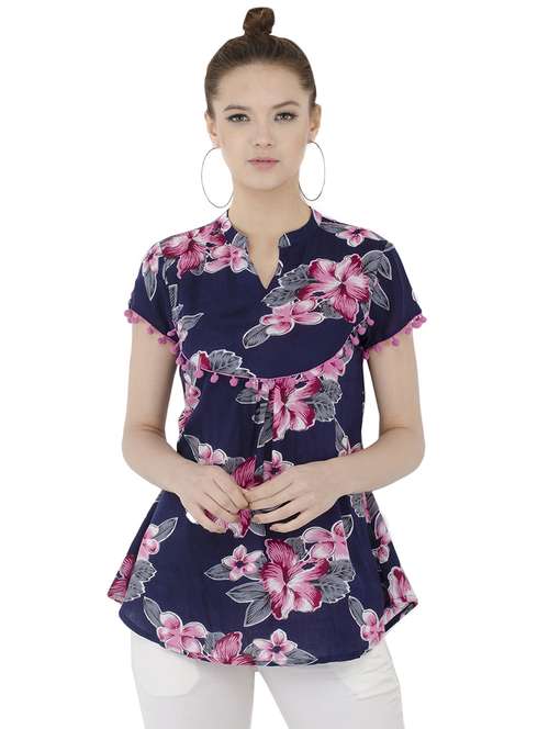 - » pom-pom detail pleated floral top