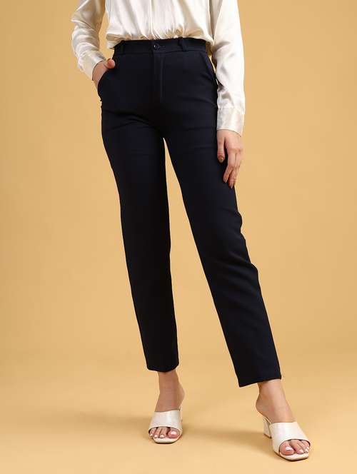- » women solid high rise cigarette pants