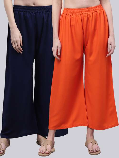 Upgrade your collection of warm-weather staples with these top-notch Dark Orange and Navy Blue palazzo combo by Valles365. Pair them with a flowy tee and lace-up sandals for a super chic look.