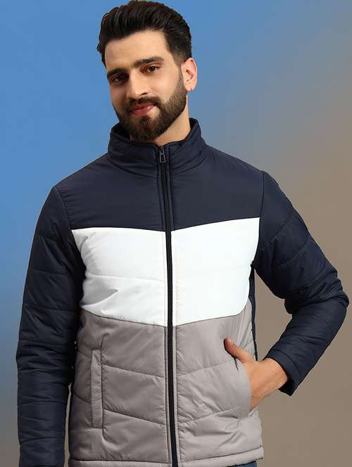 - » men color block long sleeve puffer jacket