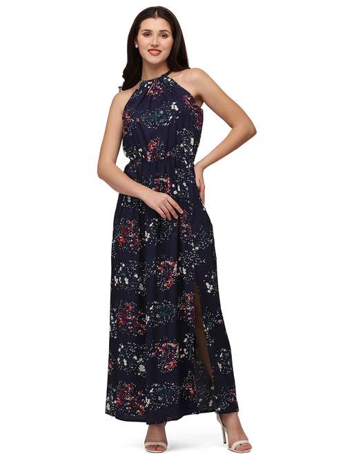 halter neck printed maxi dress
