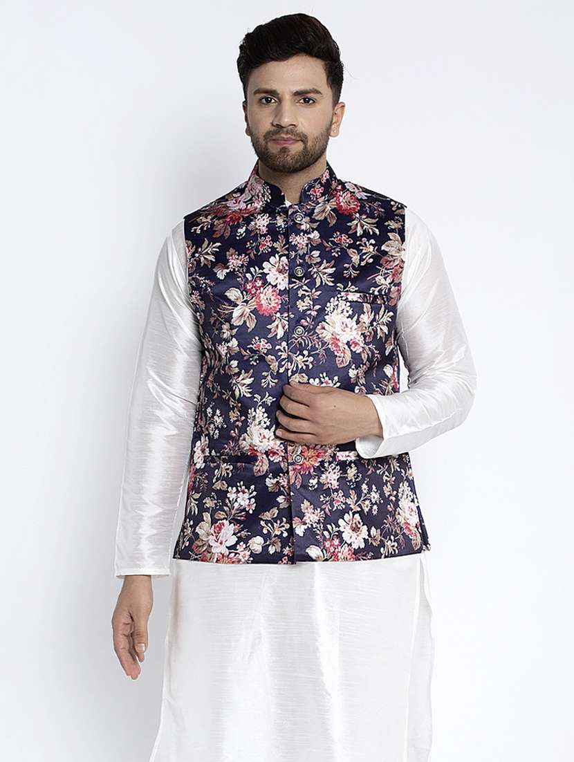 - » navy blue printed nehru jacket