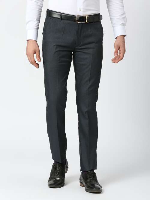 navy blue polyester flat front formal trouser