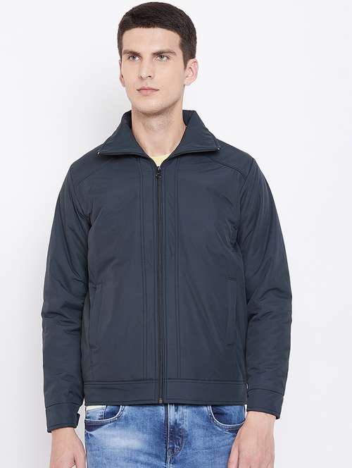 - » navy blue solid casual jacket