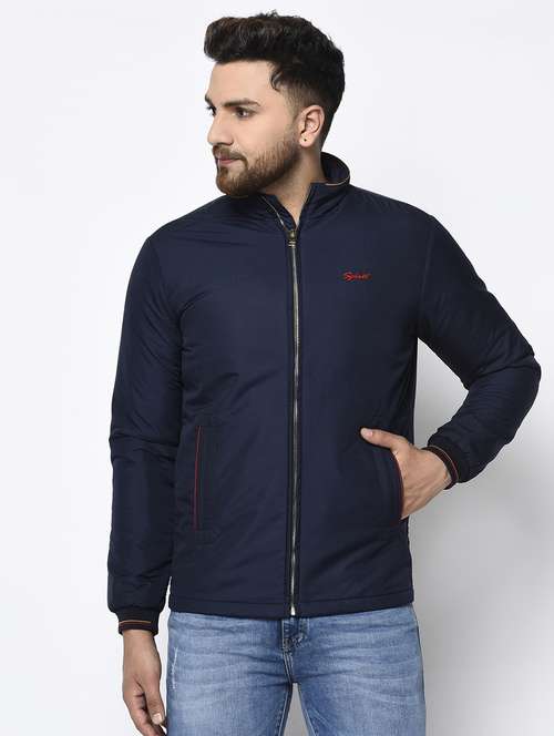 - » navy blue solid casual jacket