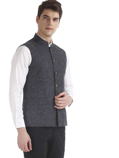 - » navy blue solid nehru jacket
