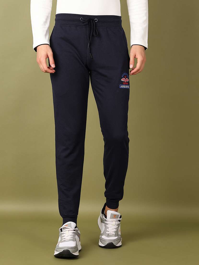 - Wish to complete the chic look on every occasion without compromising on comfort? Then do check out these elasticated joggers for active wear occasions in navy blue hues.