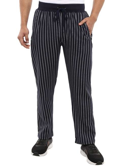 navy blue striped full length track pant