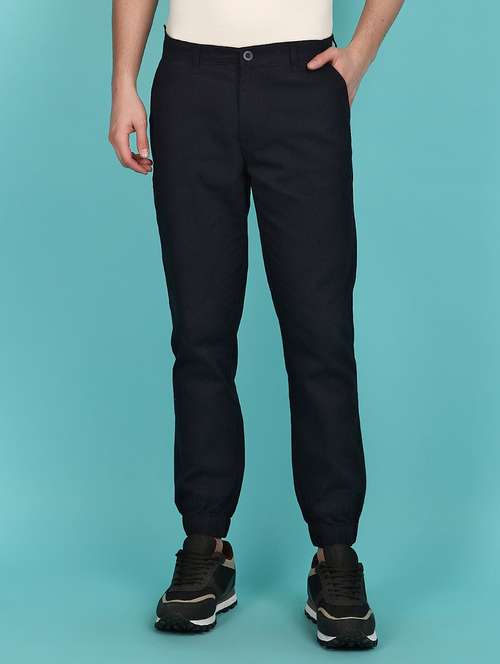 - Wish to complete the chic look on every occasion without compromising on comfort? Then do check out these elasticated joggers for casual wear occasions in navy blue hues.