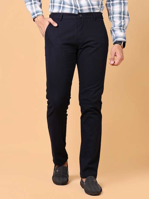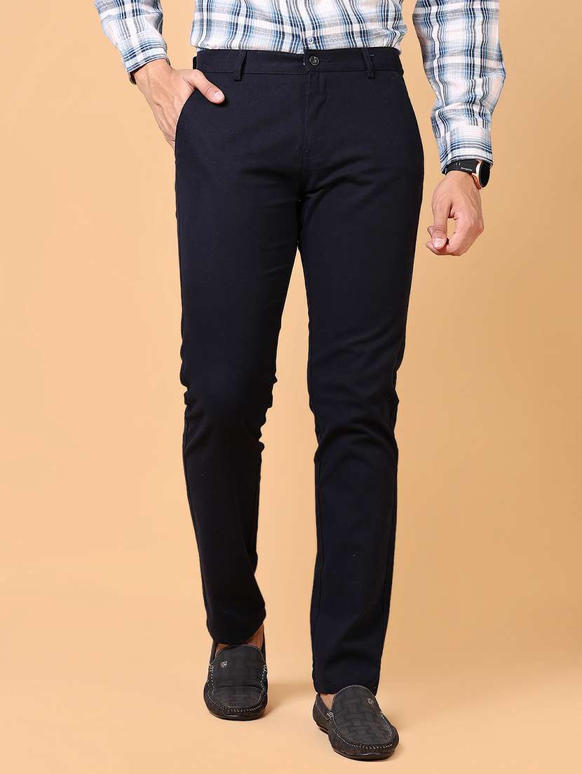 - » men solid mid rise flat front casual trouser