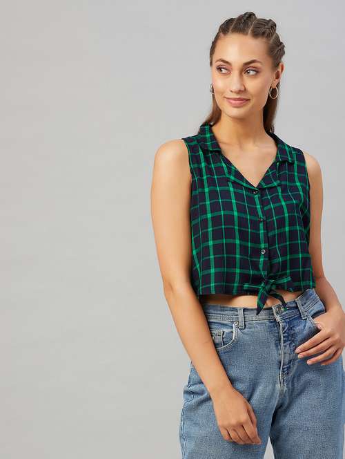 - » tie front checkered crop top