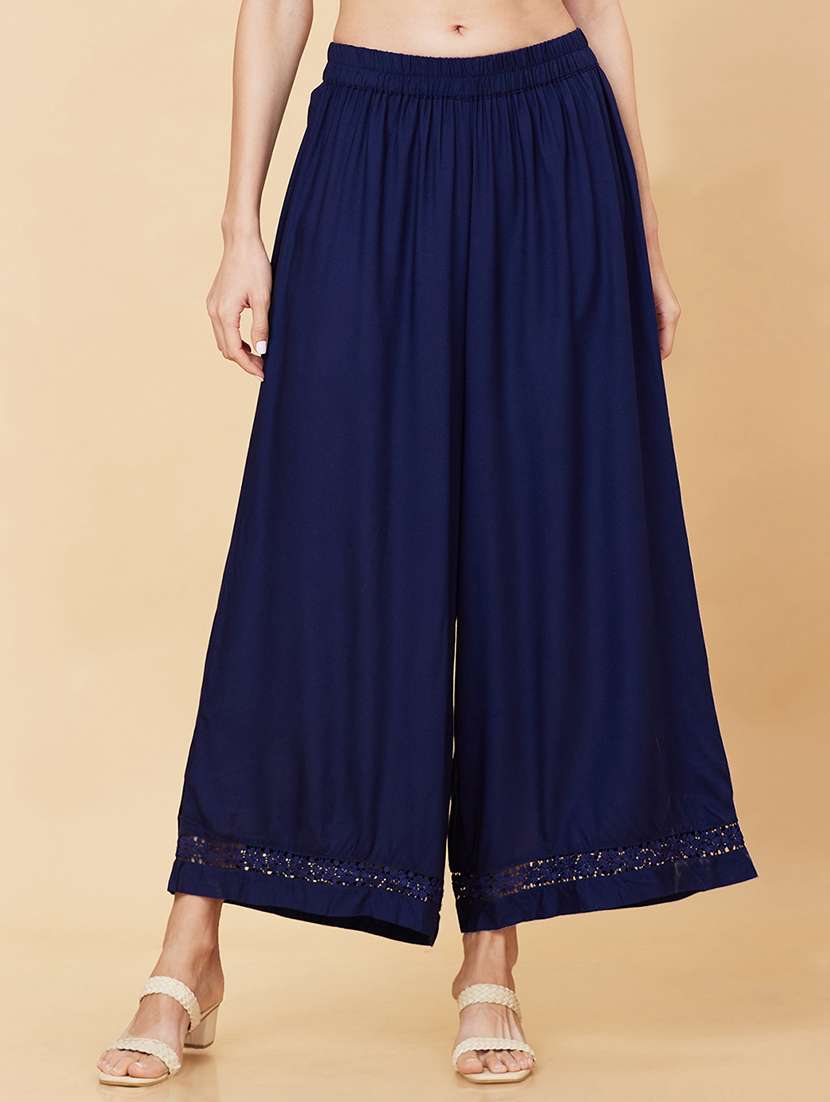 - Can’t do without fancy palazzos? Well, get them at LimeRoad from Globus and in navy blue colours.