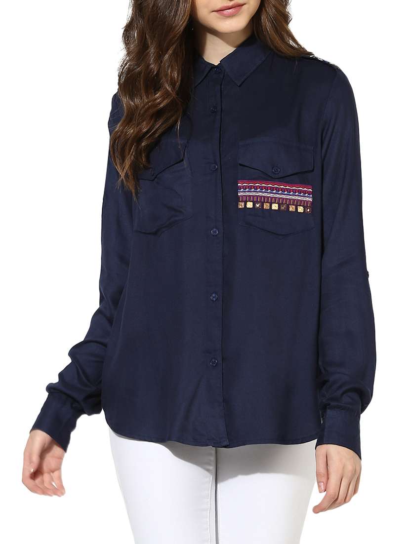 navy blue solid shirt