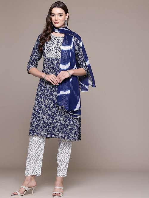 - Find gorgeous sets of ethnic wears in trending designs in navy blue colors suitable for festive wear of occasions.