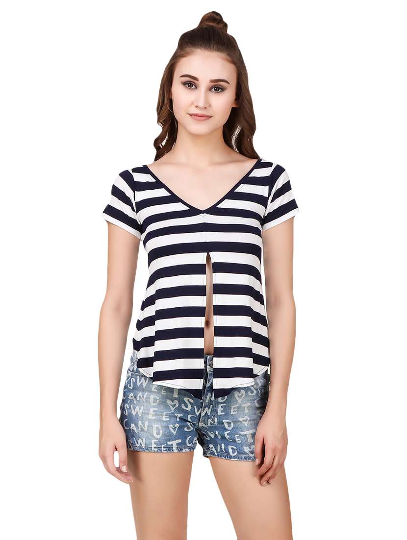 navy blue viscose front slit top - 14169787 - Very Small Image - 1