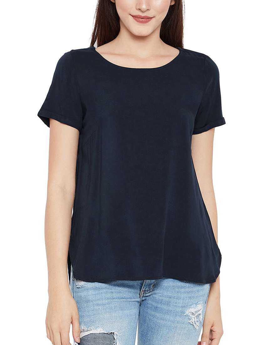 - » navy blue solid viscose top
