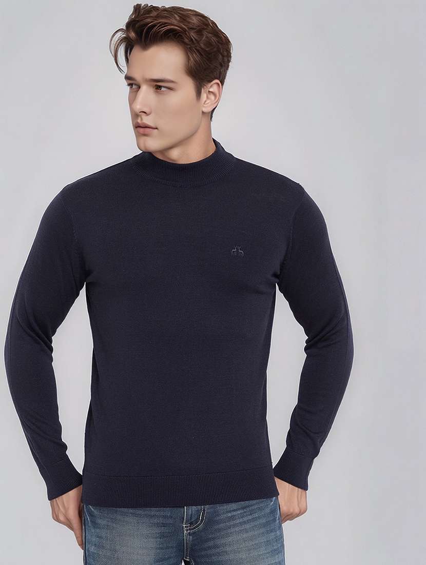 men solid long sleeve slim fit pullover