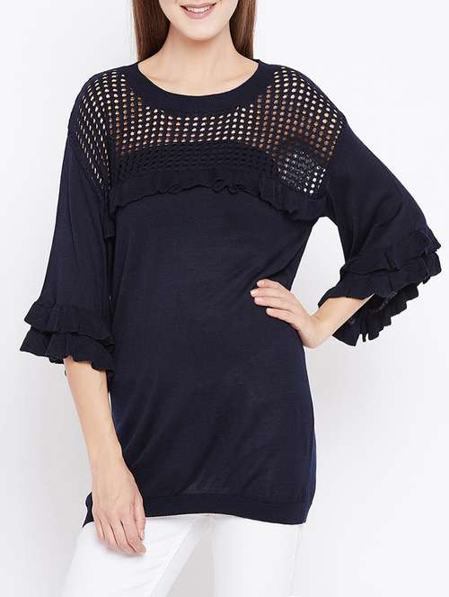 - Opt for this top made up of wool material and get it in a varied neck design.