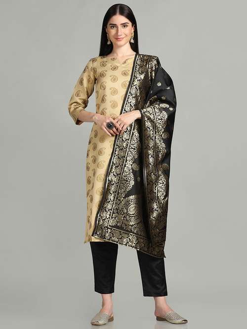 - Save your time mixing and matching various ethnic pieces and invest in beautiful suit set ethnic sets from shaily brands that give a well-fitted look in all styles.