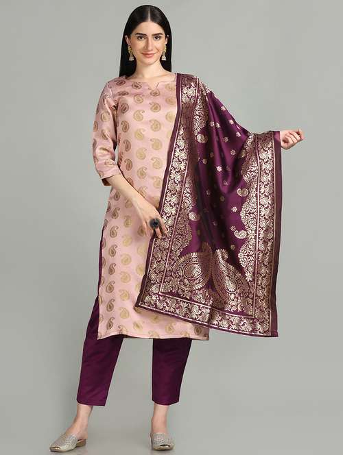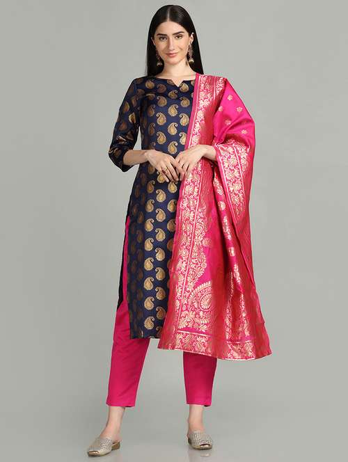notch neck kurta pant set with dupatta