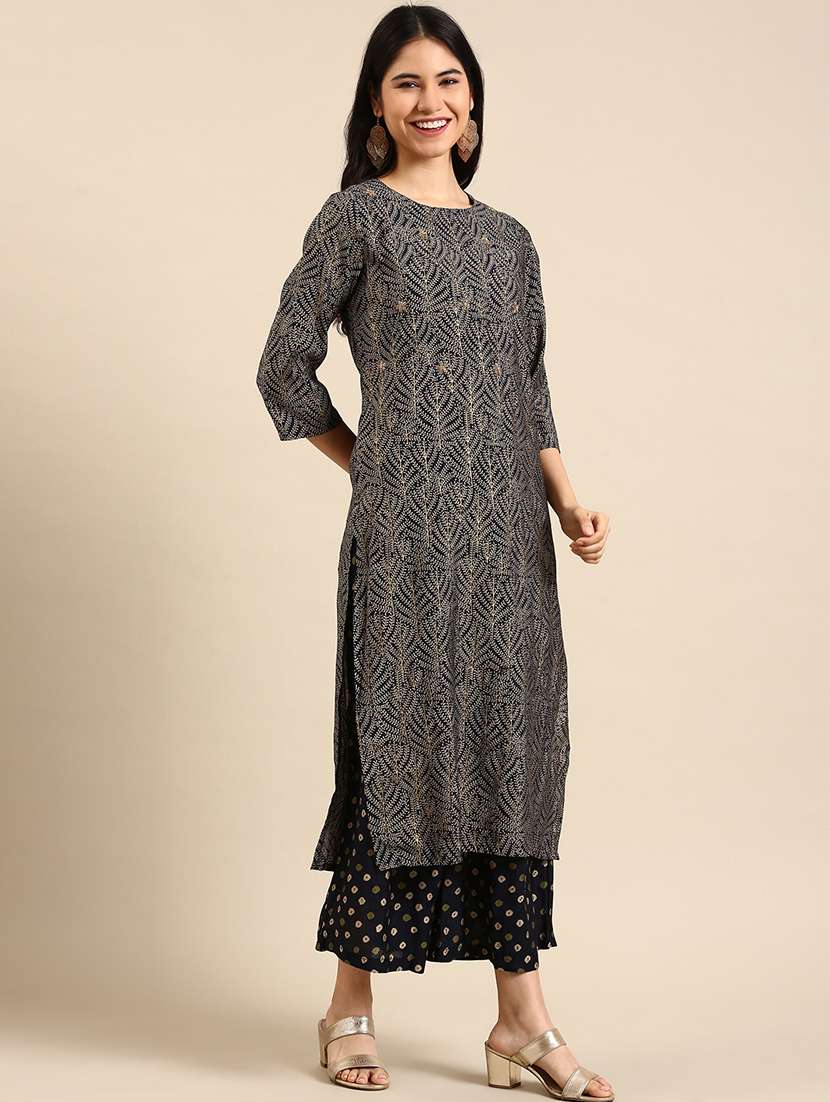 - » women printed round neck kurta palazzo set