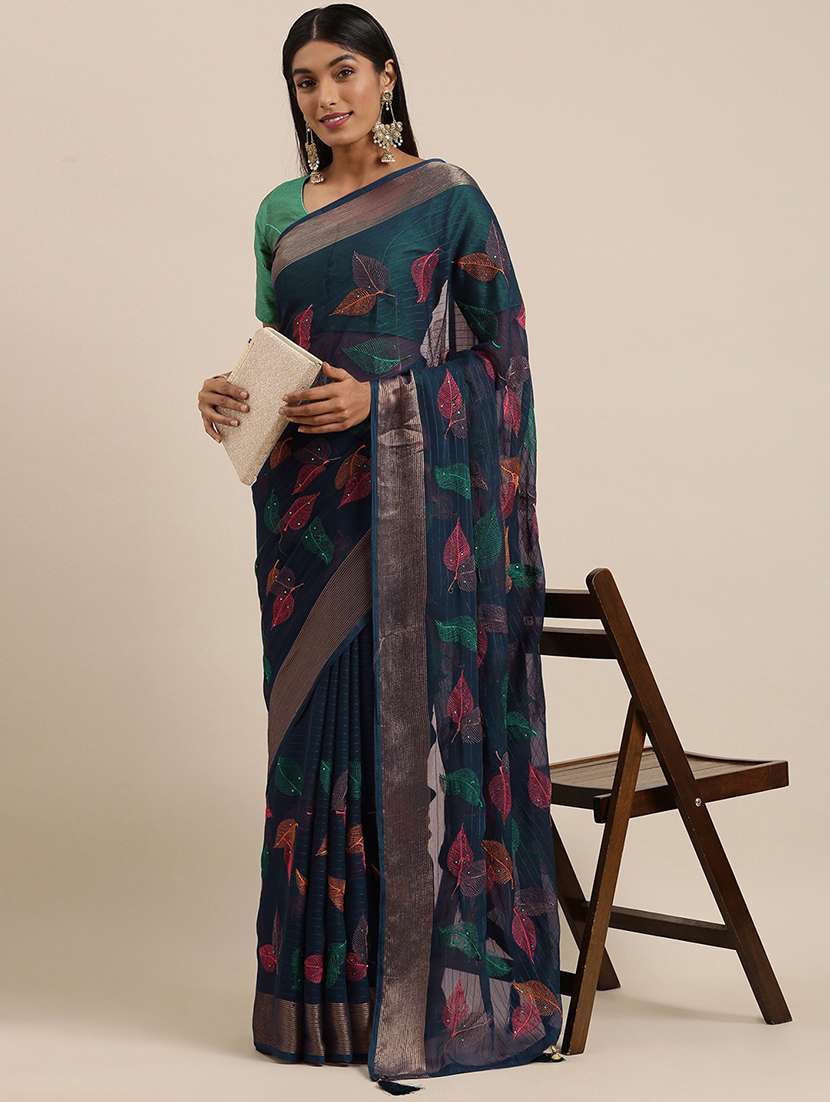 - » navy chiffon embroidered saree with blouse
