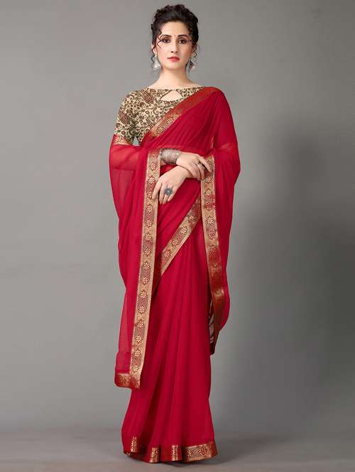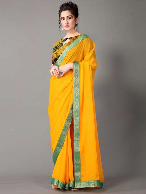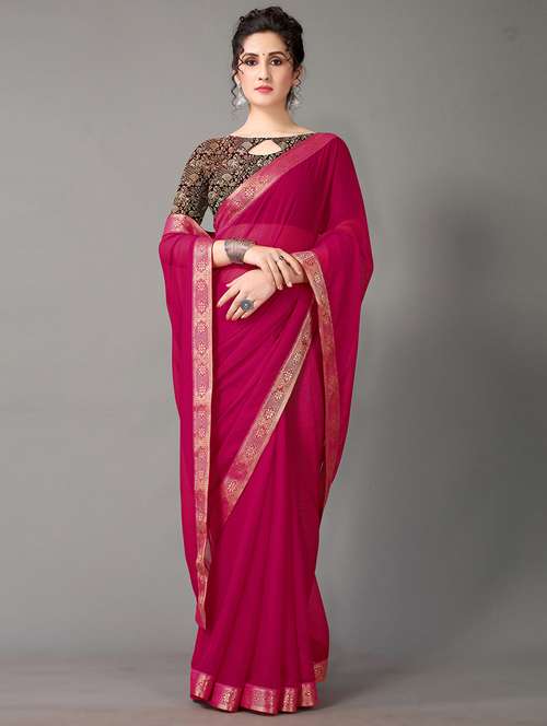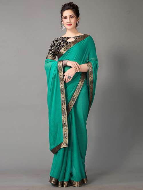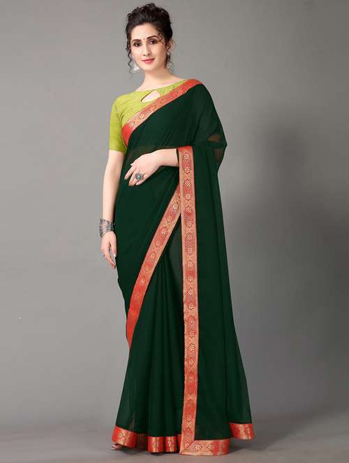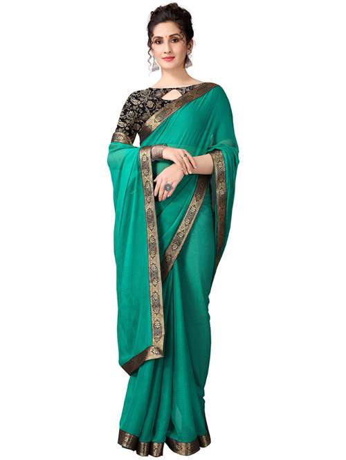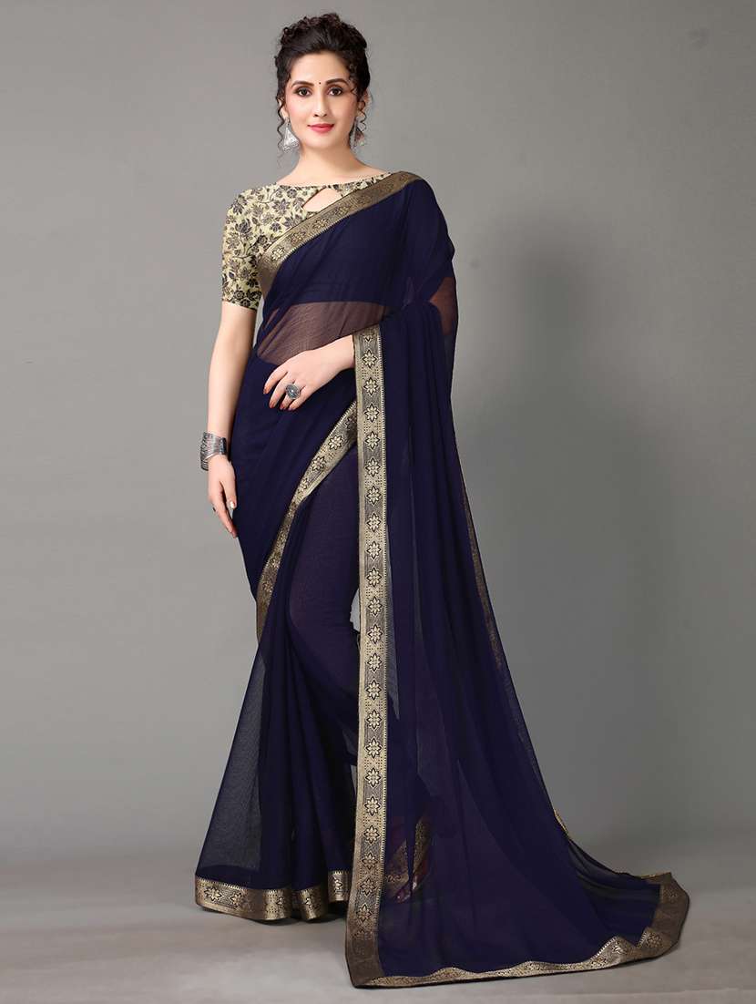 Navy Blue Solid Saree with Jacquard Border and Unstitched Blouse Piece