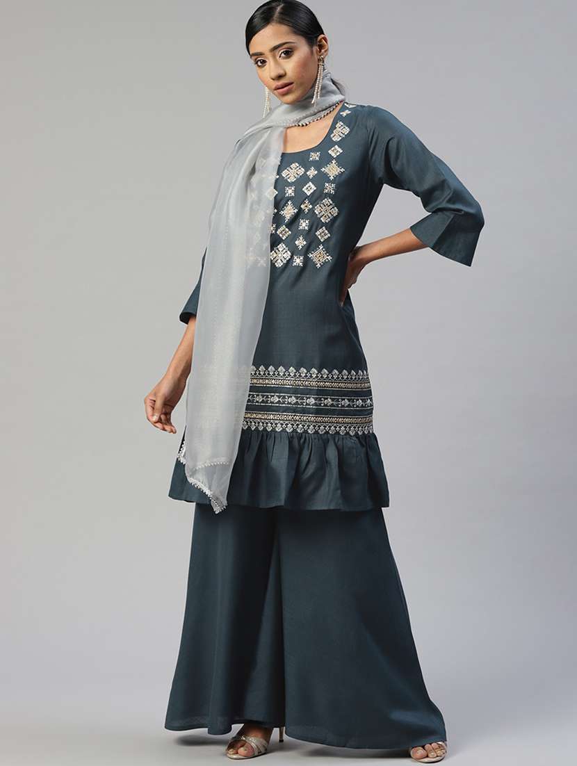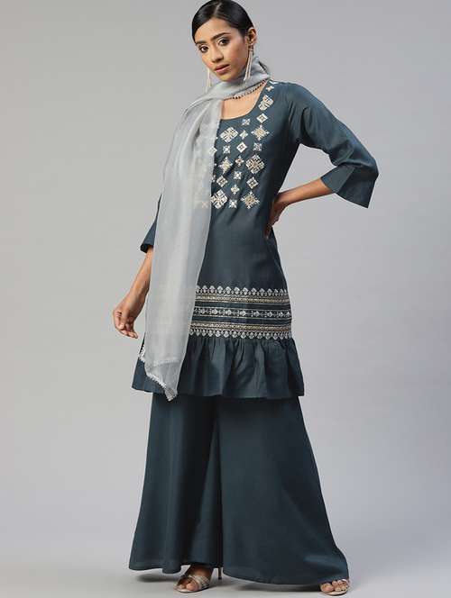 - » navy cotton blend kurta sharara set