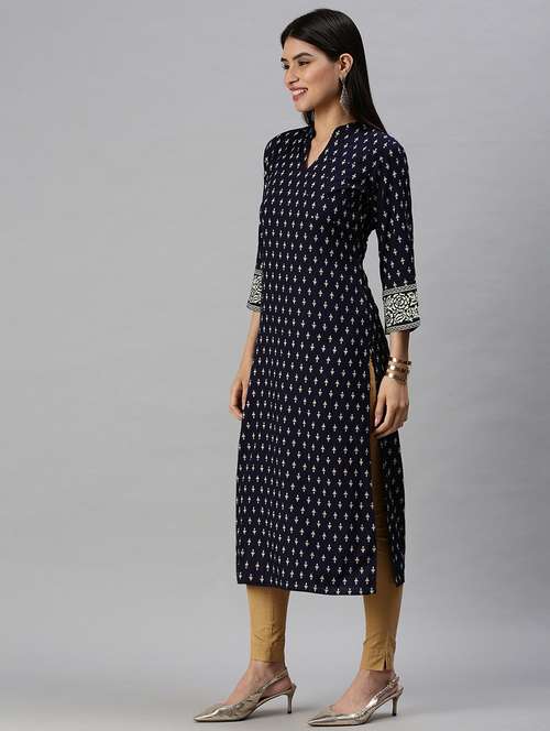 - » navy cotton blend straight kurta