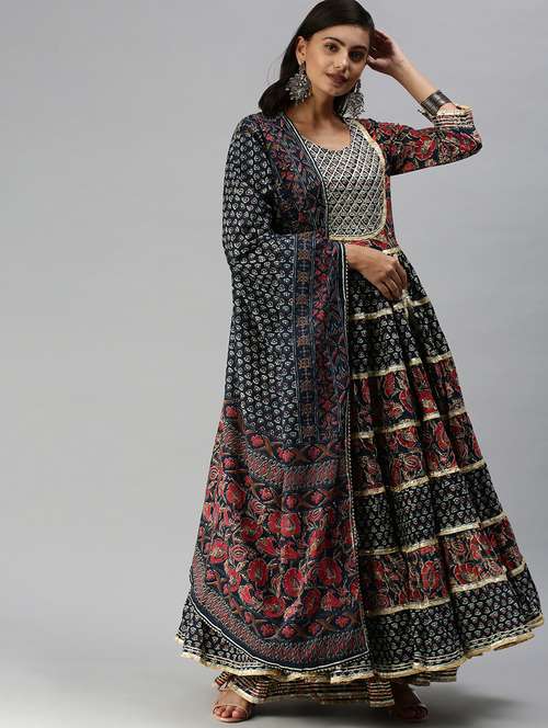 women printed kurta sharara set with dupatta