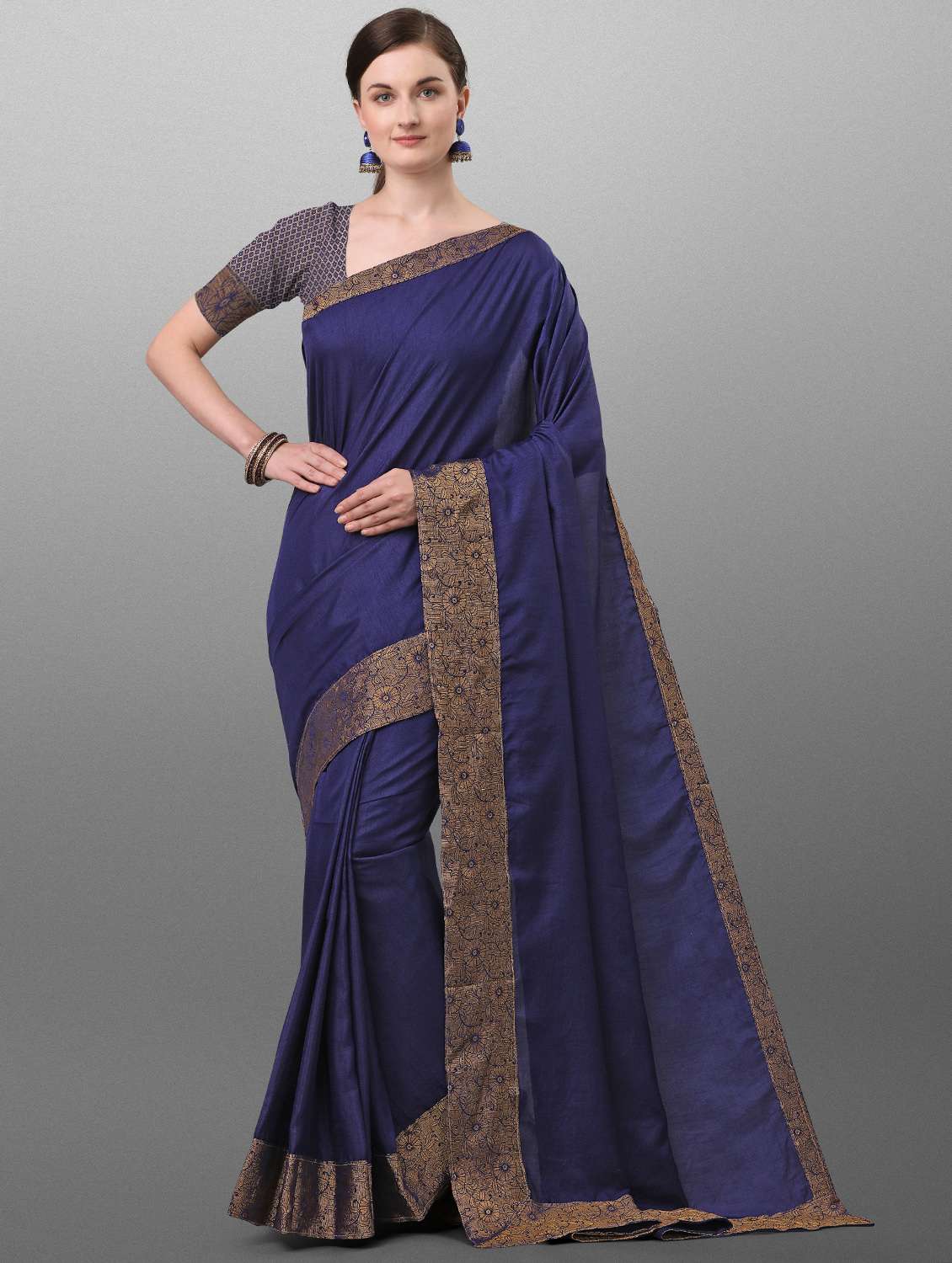- » navy cotton bordered saree with blouse