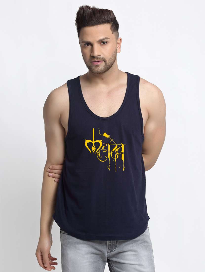 navy chest-printed vest