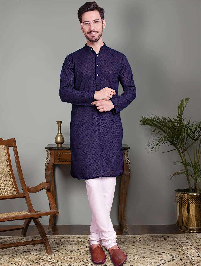 - » navy cotton kurta churidar ethnic wear set