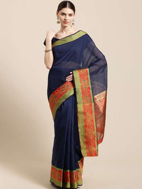 - » solid woven saree with blouse