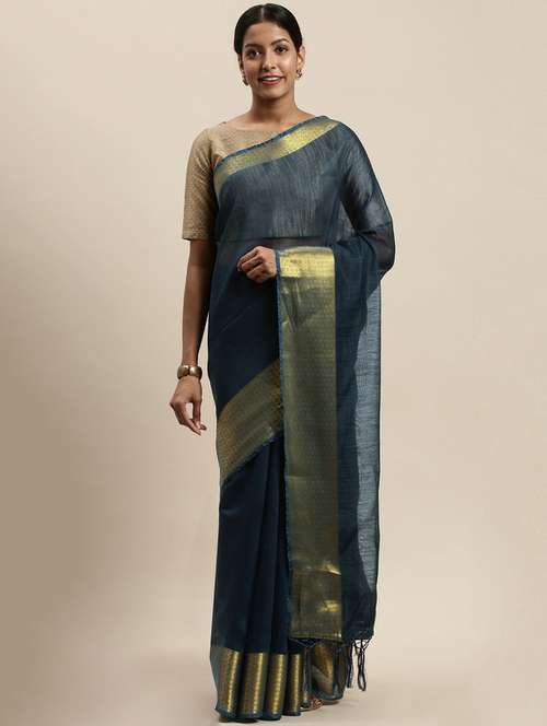 - » navy cotton silk saree with blouse