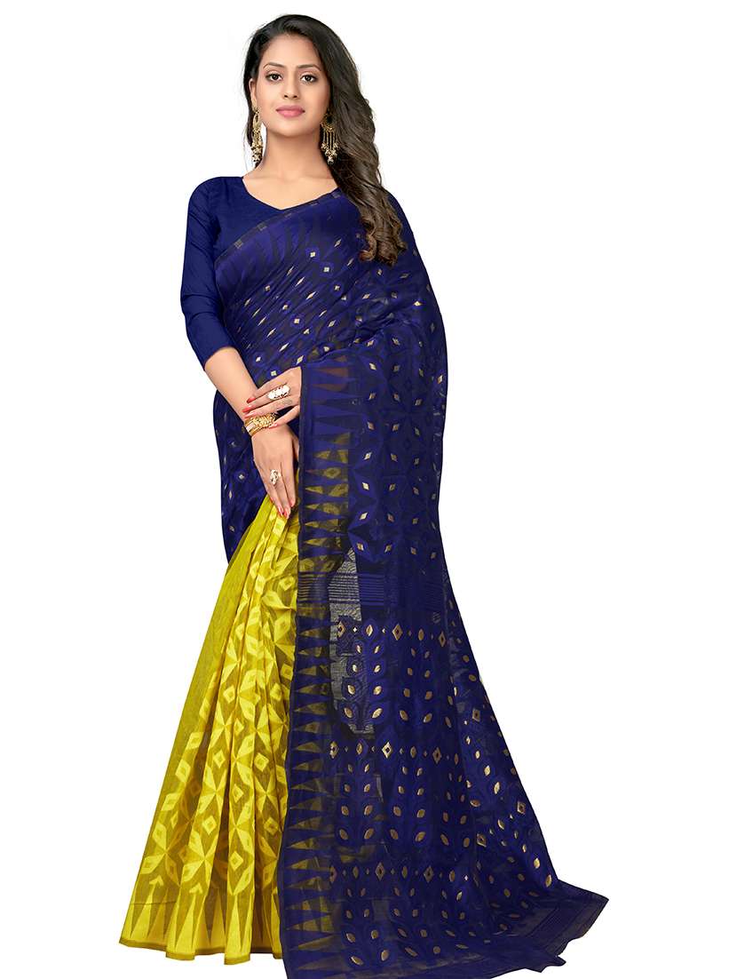 women's self design navy blue colored saree with blouse