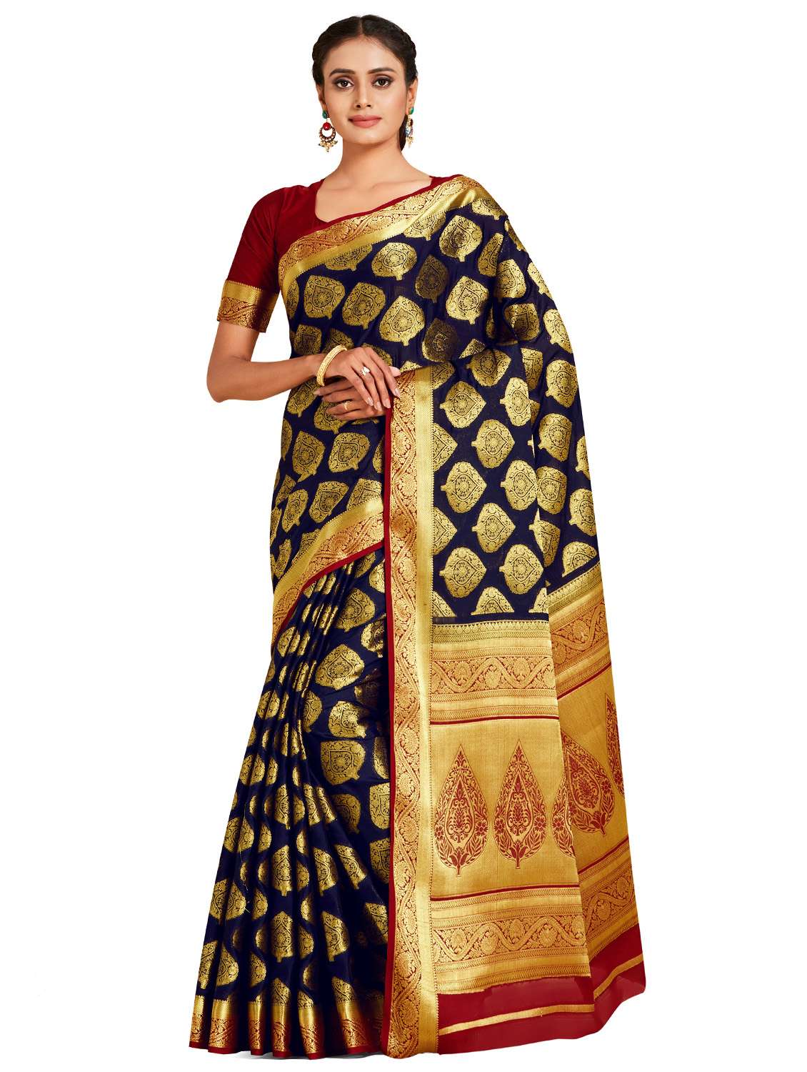 - » women's self design navy blue colored saree with blouse