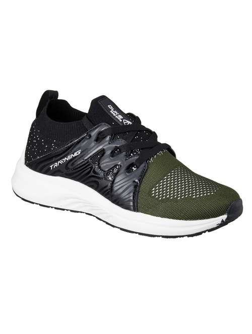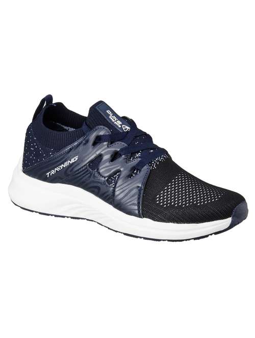 This pair of sports shoes with lace-ups styling, textured knitted panels and patterned rubber outsole promise ease of movement and outstanding durability.