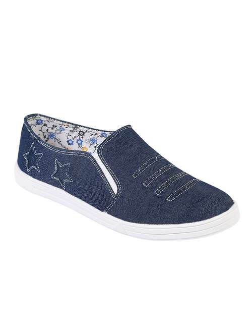 - Explore the epitome of comfy blue slip ons with round shapes to provide you an elated experience every time you put them on.