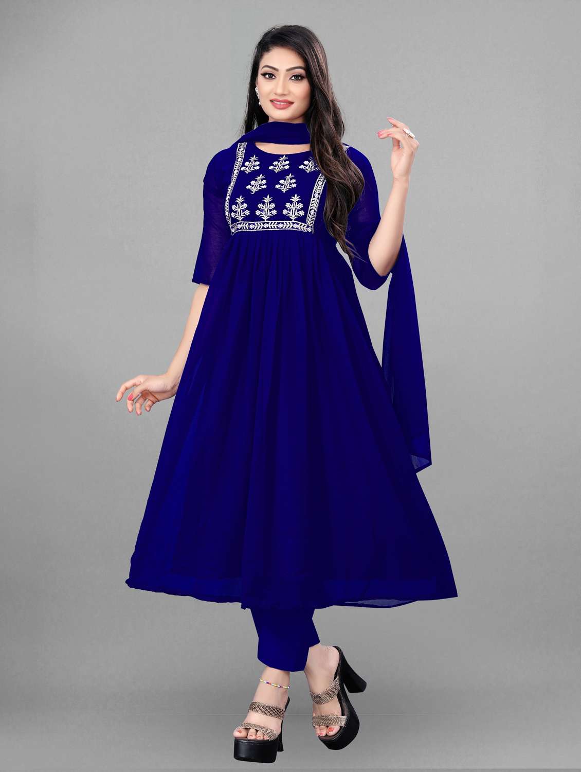 - Find gorgeous sets of ethnic wears in trending designs in blue colors suitable for casual wear of occasions.