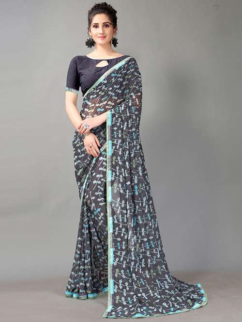 - » navy georgette printed saree with blouse