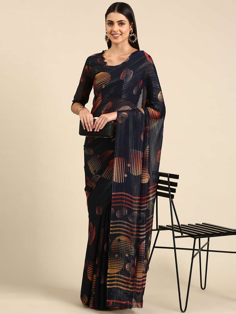 navy georgette printed saree with blouse - 19131423 - Very Small Image - 1