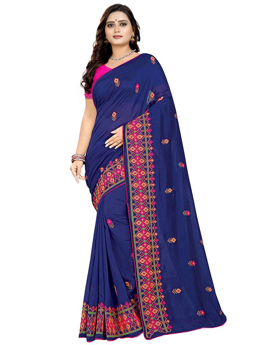 Saree fabric : Georgette. Blouse Fabric : Banglory Satin. Work : Embroidery. Type : Party Wear Saree. Saree length : 5.5 Mtr Blouse length : 0.8 Mtr Unstitched Blouse Pack of 1 Saree : 1Blouse