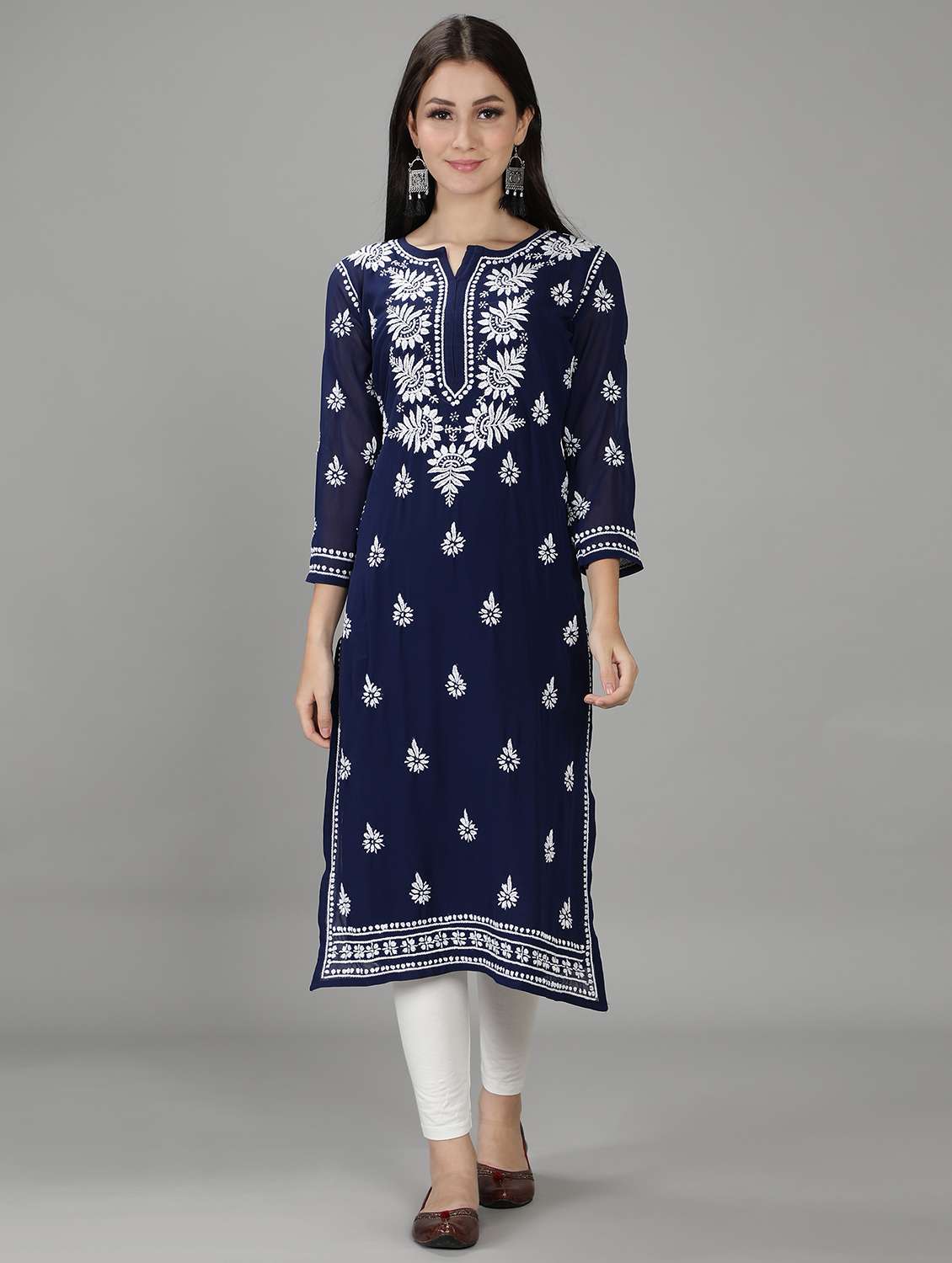 - Look pretty in a kurta from Seva Chikan and get it in navy blue. LimeRoad has something for everyone.