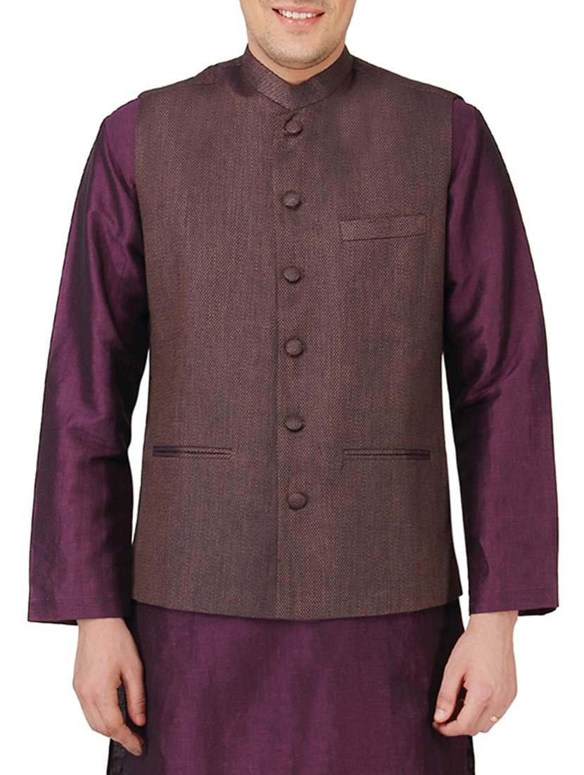 - » mayank modi navy blue and brown linen nehru jacket