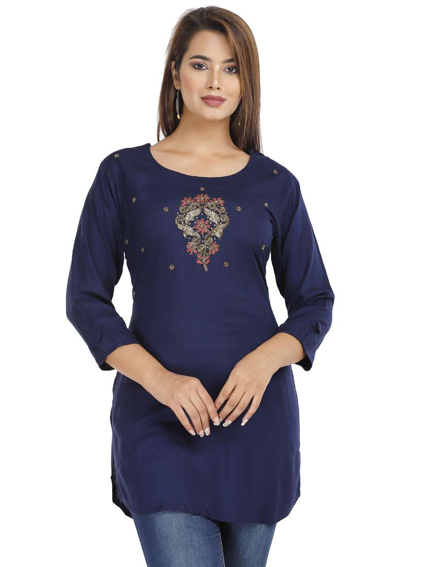 - » navy rayon straight kurti