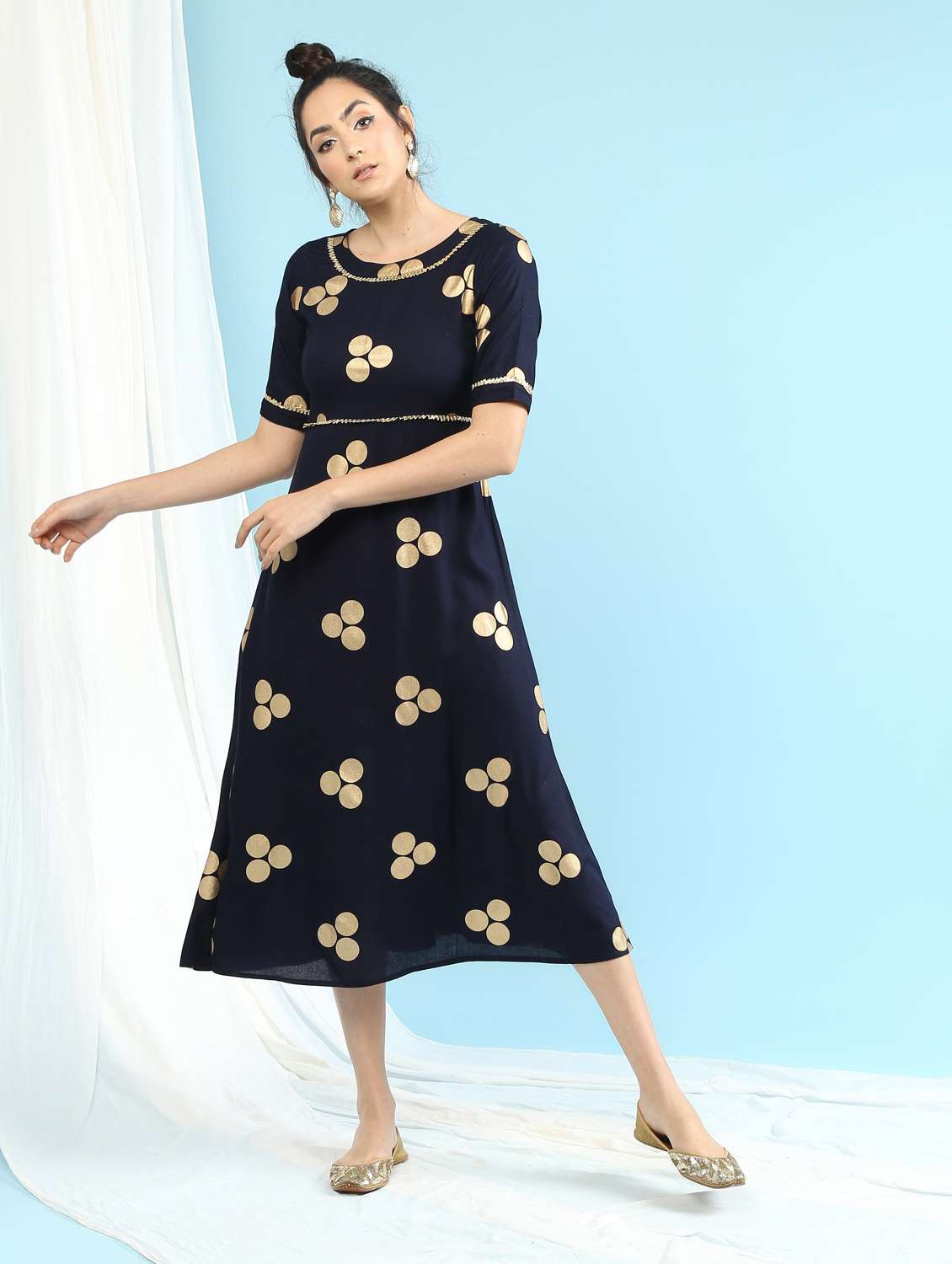 - » navy foil print gotta work kurta